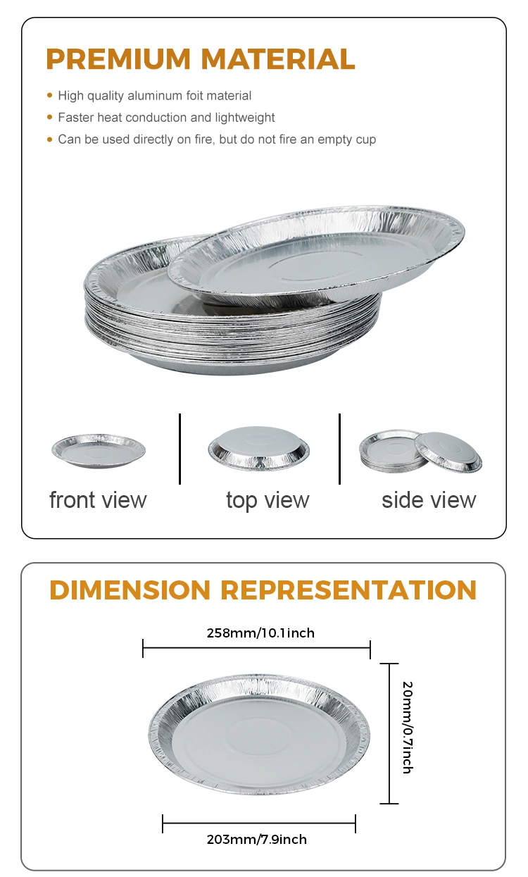 आउटडोर गतिविधिहरू मन पराउनेहरूको लागि आउटडोर पिकनिक, 10 इन्च पिज्जा पान चाँदी एल्युमिनियम एलिमिनम पन्नी कन्टेन उनीहरूको लागि आदर्श छ। यो खाना समात्न प्रयोग गर्न मात्र सकिदैन, तर फोहोर भाँचिएको घर बोक्न यसलाई सिधा खारेज गर्न सकिन्छ, जुन दुबै उज्जवल र वातावरणीय मैत्री हो।