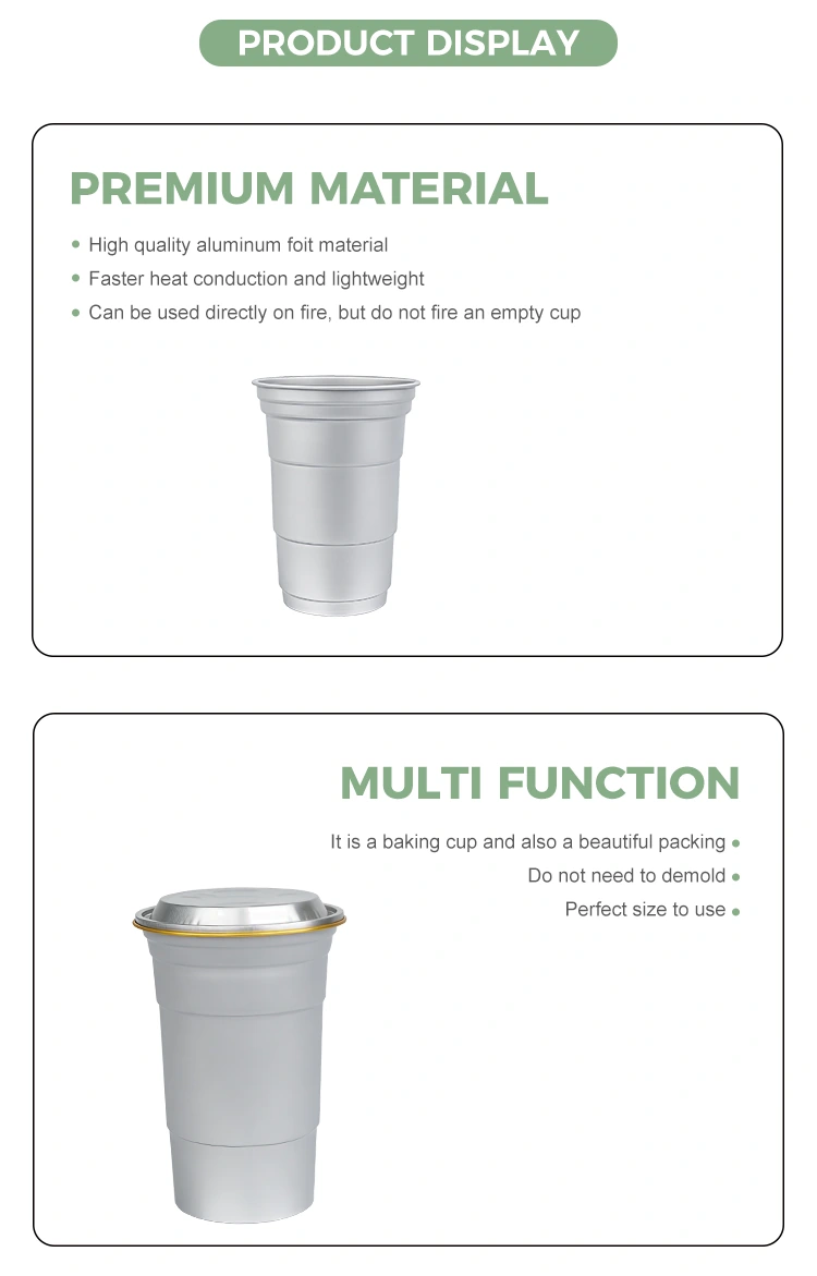 यसलाई तातो पेय भण्डारण गर्न पनि प्रयोग गर्न सकिन्छ। 16oz डिस्पोजेबल कस्टम एल्युमिनियम पन्नी तातो पेय कप आफैलाई तताउनको लागि ओभनमा राख्न सकिन्छ, वा क्याम्प फायरमा (आगोको साथ खाली कपको सीधा सम्पर्कबाट बच्न निश्चित हुनुहोस्) सामग्रीहरू तताउनको लागि।