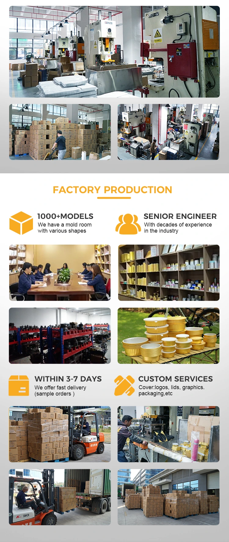 मोल्ड विकास: यदि मानक क्षमता (१६ औंस) वा आकारले आवश्यकताहरू पूरा गर्दैन भने, विशेष आवश्यकताहरू (जस्तै क्षमता वा विशेष आकारहरूमा 5 औंस, 20 औंस, आदि) अनुसार समर्पित मोल्डहरू विकास गर्न सकिन्छ।