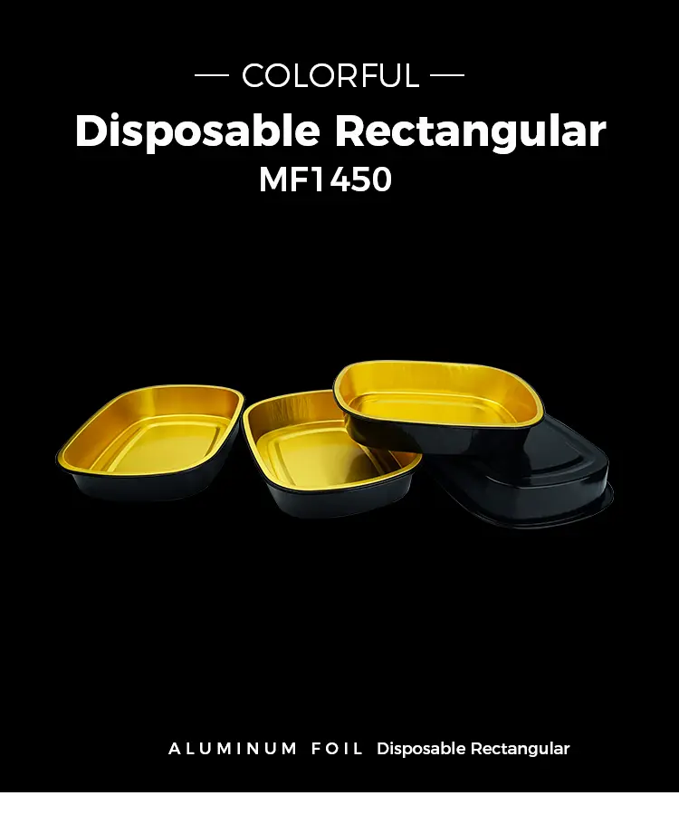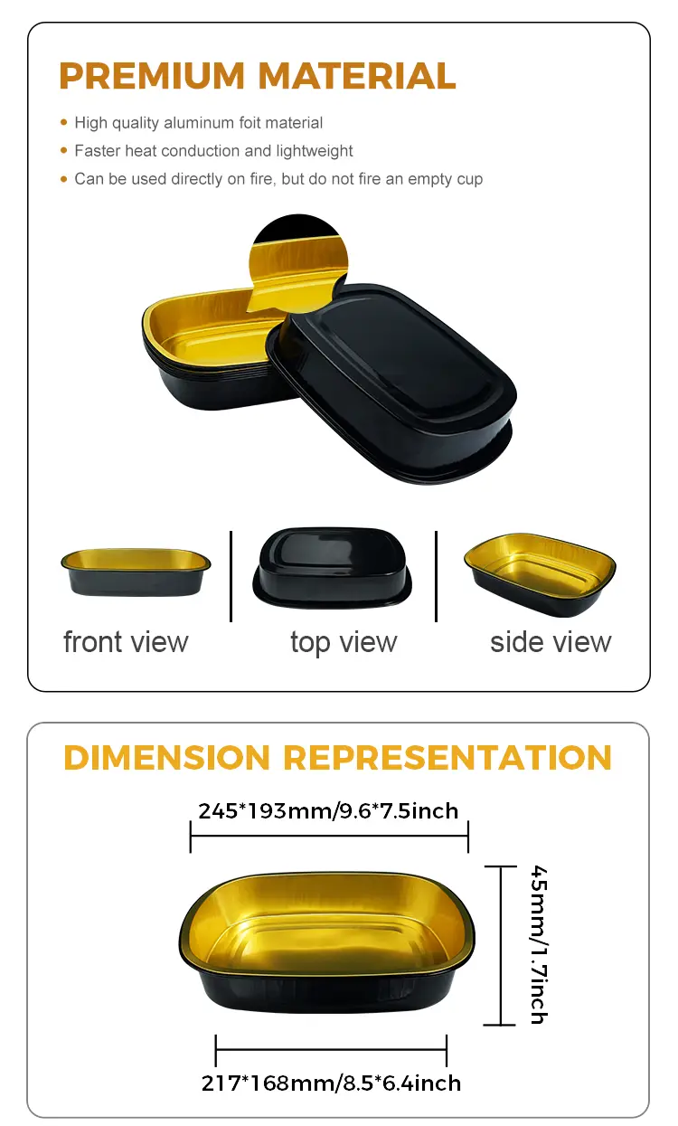 • डिस्पोजेबल कालो गोल्ड बेकिंग ट्रे आयताकार एल्युमिनियम पन्नी कन्टेनरहरूडिस्पोजेबल कालो गोल्ड बेकिंग ट्रे आयताकार एल्युमिनियम पन्नी कन्टेनरहरू
