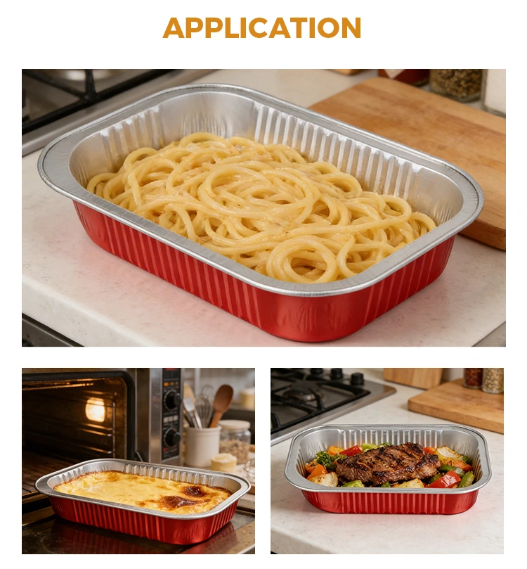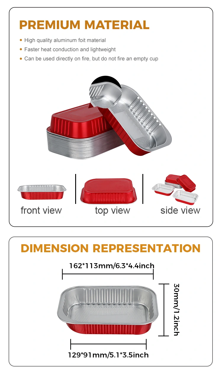 -आयत रातो एल्युमिनियम टेक आउट कन्टेनरको सामग्रीले खानाको ताजापन र ताजगीमा लक गर्न सक्छ। यसको उत्कृष्ट ताप प्रवाह र इन्सुलेशन गुणहरूले यसलाई ओभन, माइक्रोवेभमा सिधा तताउन र फ्रिजमा फ्रिजमा राख्न अनुमति दिन्छ, प्रभावकारी रूपमा खानाको मौलिक स्वादमा लक गर्न र लामो समयको लागि आदर्श स्वाद कायम राख्छ।