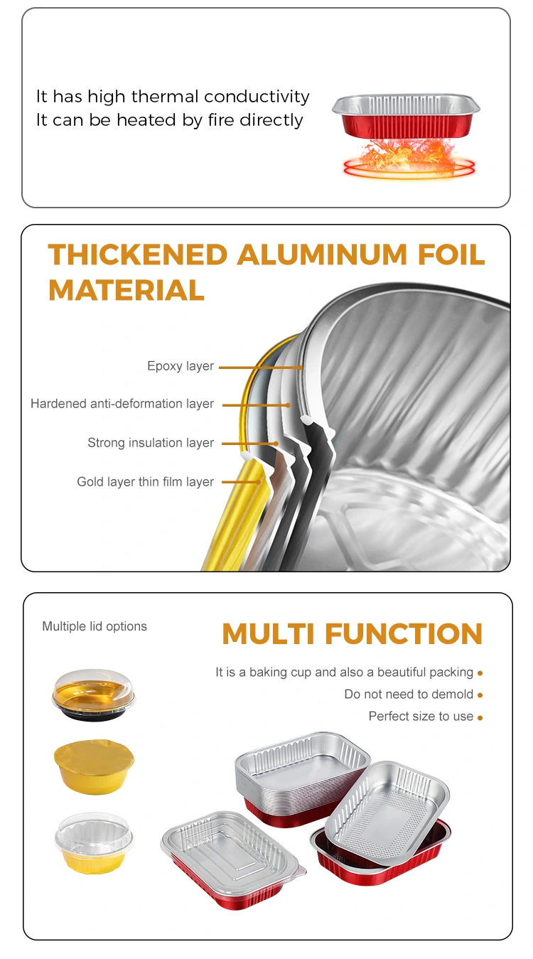 डिस्पोजेबल क्याटरिङ सिल रातो स्क्वायर एल्युमिनियम पन्नी कन्टेनर विशिष्टताहरू विविध छन् (विभिन्न क्षमताका विकल्पहरू सहित), खानाको सानो भाग, विशेष खाजा, पारिवारिक जमघटका लागि परिकार र सूपसम्म, ती सबैलाई ठ्याक्कै मिलाउन सकिन्छ। एक पटक प्रयोग गर्ने सुविधाले सरसफाइको आवश्यकतालाई हटाउँछ, श्रम लागत घटाउँछ र खानपान व्यवसायहरूको लागि सामग्री लागतहरू सफा गर्छ। यसले पारिवारिक जमघटहरू र बाहिरी गतिविधिहरू जस्ता परिदृश्यहरूमा खाना पछि सरसफाईको झन्झटलाई पनि हटाउँछ, यसलाई कुशल, सुविधाजनक र तनावमुक्त बनाउँछ।
