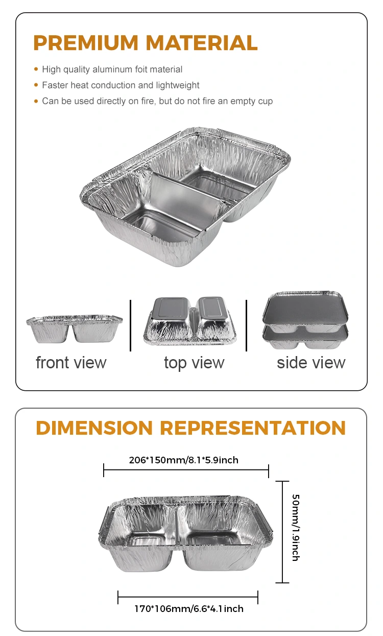 डिस्पोजेबल डिब्बेले पेन खाद्य एल्युमिनम एल्युमिनियम कन्टेन कागज ढेरको साथ पेन प्रीमिन कन्टेनरसँग राम्रो तातो प्रतिधारण गर्दछ र खाना तातो गुमाउन सक्छ। शरद in तुमा र जाडोमा, यसले तातो खानाको संरक्षणमा राम्रो प्रभाव पार्दछ, जस्तै ताजा गरिएको तातो स्ट्युले खास समयावधिको लागि, ताकि उपभोक्ताहरूले खाँदा तातो खानाको आनन्द लिन सक्छन्।
