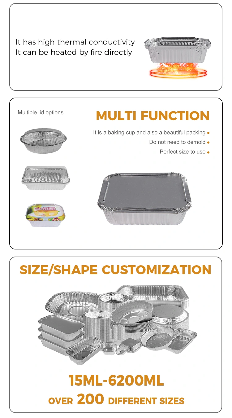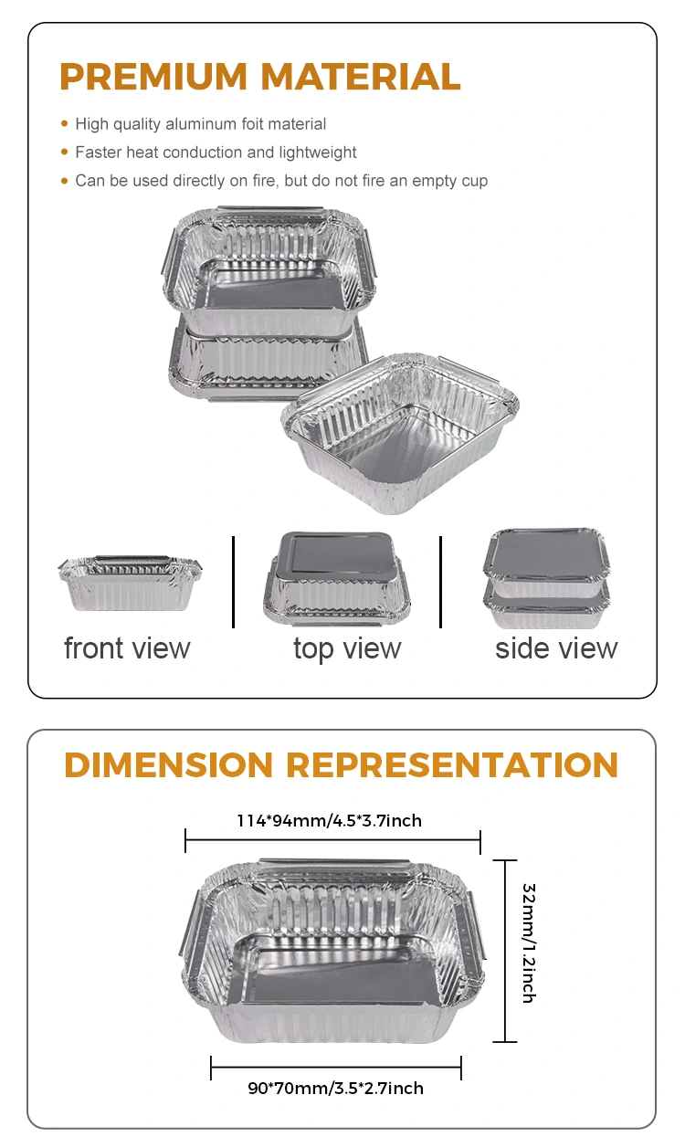 Yanuu Aluminum fill आपूर्तिकर्ताको डिस्पोजेबल टिन पन्नी एल्युमिट एल्युमिट एल्युमिट एल्युमिट एल्युमिट एल्युमिट कन्टेन एक अद्वित लामो रोटी डिजाइनर उपलब्ध छ एन्टी-स्लिफ गुणहरूको लागि तल एक अद्वित लामो रोटी डिजाइन हो। थपिँदा थपिएको स्टिफ्रेमले उत्पादनको कठोरता बढाउँदछ। हेमरिंग डिजाइनले कन्टेनरलाई अधिक मजबूत र टिकाऊ बनाउँछ, उच्च तापक्रमको सामना गर्न र तताउने कोसिस गर्न सक्षम, जूमिंग वा तताउनेबाट खाना बेवास्ता गर्दछ।