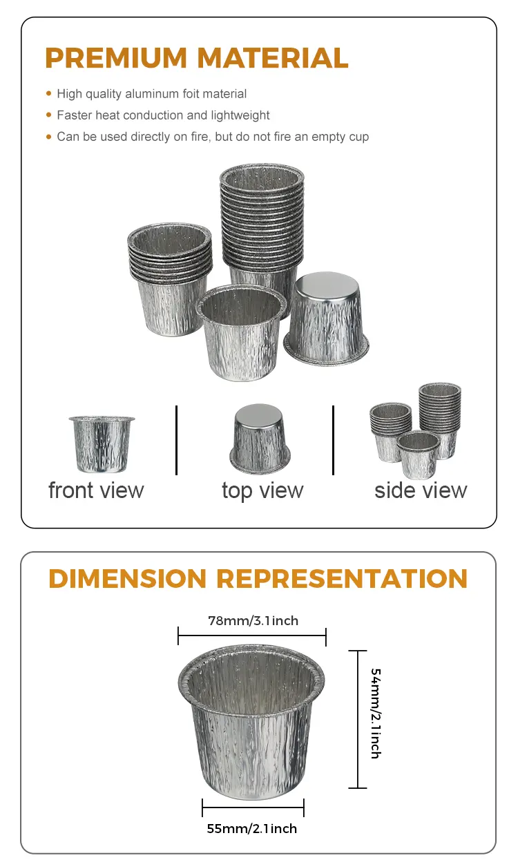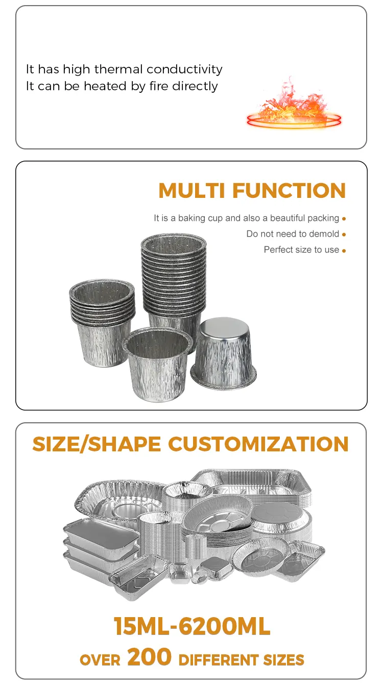 हट ट्यागहरू: डिस्पोजेबल राउन्ड केक कप सिल्भर एल्युमिनियम पन्नी खाद्य कन्टेनरहरू