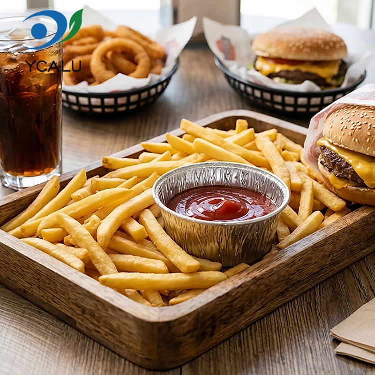 Yunchu एल्युमिनियम पन्नी आपूर्तिकर्ता डिस्पोजेबल राउन्ड सॉस एयर फ्राइर सिल्वर एल्युमिनियम पन्नी कन्टेनर फूड ग्रेड एल्युमिनियम पन्नी सामग्री, कुनै गन्ध छैन, कुनै भारी धातु अवशेष, खाद्य सम्पर्क मापदण्डहरू, उच्च शुद्धता र स्थिर रासायनिक गुणहरूको पालना गर्दछ। यदि यो अम्लीय सॉसले भरिएको छ र उच्च तापक्रममा तताइएको छ भने, यसले हानिकारक पदार्थहरू छोड्दैन, र खानासँग प्रत्यक्ष सम्पर्कमा हुँदा तपाईं पूर्ण रूपमा सुरक्षित महसुस गर्न सक्नुहुन्छ। उत्पादनले FDA फूड ग्रेड प्रमाणीकरण पास गरेको छ र FDA 21 CFR सम्बन्धित मापदण्डहरूलाई कडाइका साथ पालना गर्दछ, व्यावसायिक माइग्रेसन परीक्षण र भारी धातु पत्ता लगाएपछि, लेड र क्याडमियम जस्ता हानिकारक पदार्थहरूको सामग्री सुरक्षा सीमाभन्दा धेरै तल छ, र योग्यताहरू पूरा छन्। चाहे यो घर वा व्यापारिक प्रयोगको लागि हो, तपाईं मनको शान्ति संग छनौट गर्न सक्नुहुन्छ। मासुको मासु, तरकारीका लागि सलाद ड्रेसिङ र डम्पलिङहरू डुबाउनको लागि सिरका भाँडाहरूका लागि ससहरू भाग गर्न यसलाई प्रयोग गर्नुहोस्। अंशहरू बर्बाद नगरी सही छन्। यसले गन्ध स्थानान्तरणबाट पनि बच्न सक्छ, र यसलाई ठाउँ नलिइकन फ्रिजमा सफासँग भण्डारण गर्न सकिन्छ। टेकअवे व्यापारीहरूले यसलाई ससहरू भण्डारण गर्न प्रयोग गर्छन्, जुन सिल गरिएको र लीक-प्रूफ हुन्छ, र ग्राहकहरूलाई सफासँग डेलिभर गरिन्छ। केचप होस्, मीठो खुर्सानीको चटनी होस् वा मोटो तिलको चटनी होस्, खानेकुरामा चुहावट र फोहोर हुने कुनै अप्ठ्यारो पर्दैन। बाहिरी पिकनिक र क्याम्पिङका लागि पनि, तपाईं केही साथमा ल्याउन सक्नुहुन्छ र यसलाई डुब्ने ससहरू राख्न प्रयोग गर्न सक्नुहुन्छ। यो हल्का छ र ठाउँ लिदैन। तपाईं यसलाई प्रयोग पछि सीधा फ्याँक्न सक्नुहुन्छ। तपाईंले घर फर्केर फोहोर कन्टेनरहरूको गुच्छा बोक्नु पर्दैन। यो मुख्यतया सहज र समस्या-मुक्त बारे हो।