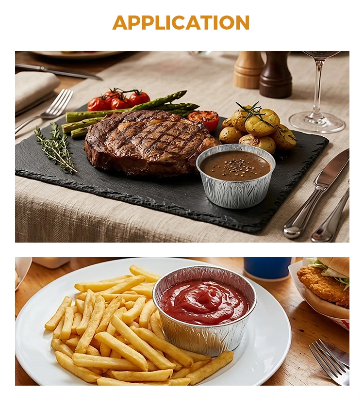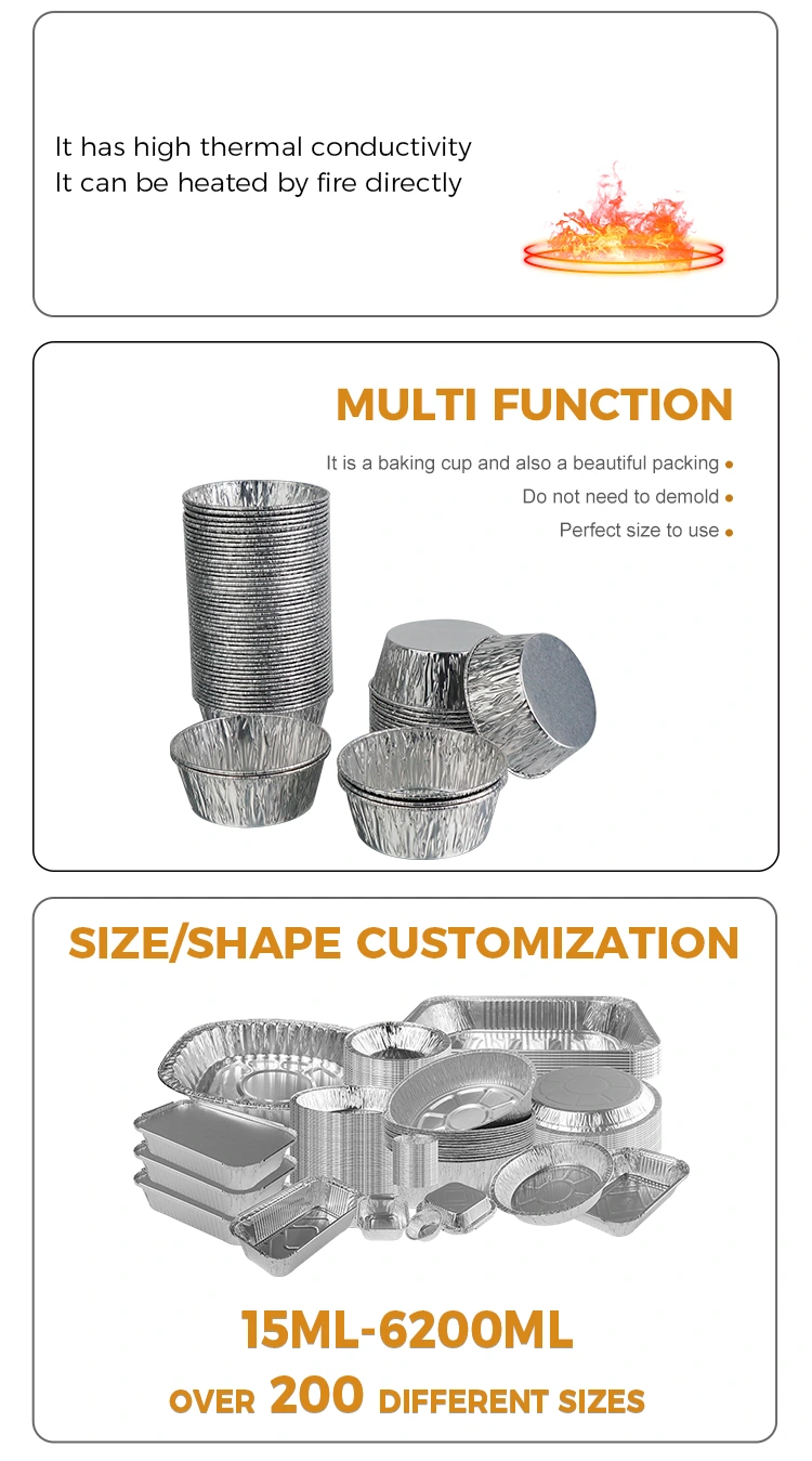 हट ट्यागहरू: डिस्पोजेबल राउन्ड सस सिल्भर एल्युमिनियम पन्नी खाद्य कन्टेनरहरू