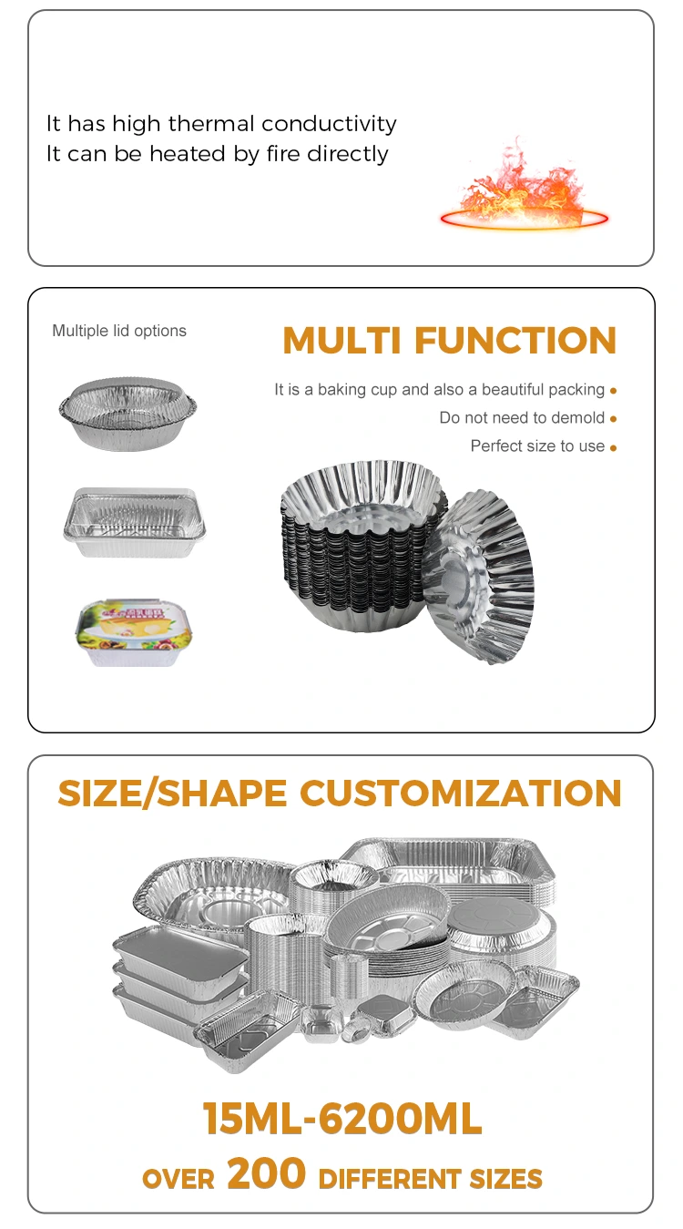 Yanuu Aluminum fill अण्डा टर्ट टर्ट टोकिंग चाँदी एल्युमिनम पन्नी खाद्य कन्टेन, या त व्यावसायिक रूपमा उत्पादन, विभिन्न आवश्यकताहरु पूरा गर्न को लागी। यसको इको-मैत्री, सुरक्षित सामग्री र बहुमुखी डिजाइनले यसलाई प्याकि उत्साहका लागि एक आदर्श विकल्प बनाउँदछ।