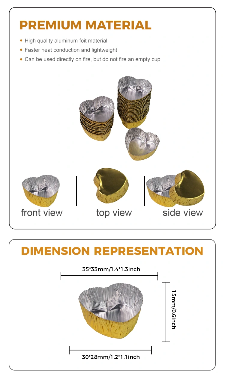 यो मुटुको आकारको सानो बेकिंग चाँदी फोरम स्ट्रन्ट कन्टेनर प्याकेज, कुकीज र टिर्ट्स जस्ता साना बेकरी उत्पादनहरू प्याकिंगको लागि उपयुक्त छ। हामी प्रत्येक उत्पादन कदम चालको सर्तमा प्रत्येक उत्पादन कदम नियन्त्रणमा छौं कि सबै उत्पादनहरूले राष्ट्रिय सुरक्षा मापदण्डको सामना गर्नुपर्नेछ, र जर्मन ERP प्रमाणपत्र र ISO9001 प्रमाणिकरण बित्यो।