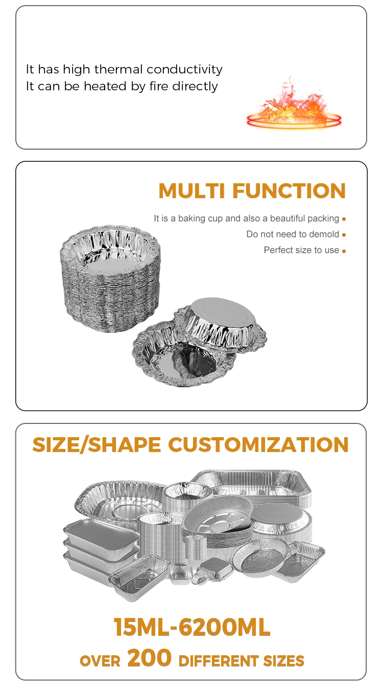 Yahuuu एल्युमिनियम पन्नीले तपाईंलाई लेस राउन्ड बेकिंग केक चाँडो चाँदीको साथ प्रदान गर्दछ iluminum fril कन्टेनर बेकिंग र स्टीम को लागी। यो धेरै प्रयोगहरूको लागि डिजाइन गरिएको हो, केकहरू, बाउल केकहरू, र विभिन्न अन्य व्यंजनहरू बनाउन गर्न सक्षम छन्। यो डिस्पोजिन योग्य छ, सफाईको आवश्यकता पर्दैन, र -300 देखि 2 2500 ℃ देखि 2 2500 ℃ देखि 2 250 ℃ देखि उच्च तापक्रम प्रतिरोध गर्न सक्छ। बाक्लो, उच्च-गुणवत्ता, खाद्य-ग्रेड र वातावरणीय मैत्री सामग्रीबाट बनेको, हानिकारक पदार्थ बिना प्रयोग गर्न सुरक्षित छ। यो क्षति, कडा र टिकाऊ को लागी प्रतिरोधात्मक छ, कडा टेन्टा शक्तिशाली शक्ति र राम्रो विस्तार, जबकि किनारा कटौती गर्नबाट बच्न। विविध बेकिंग आवश्यकताहरू पूरा गर्न विभिन्न विशिष्ट विवरणहरू छन्।