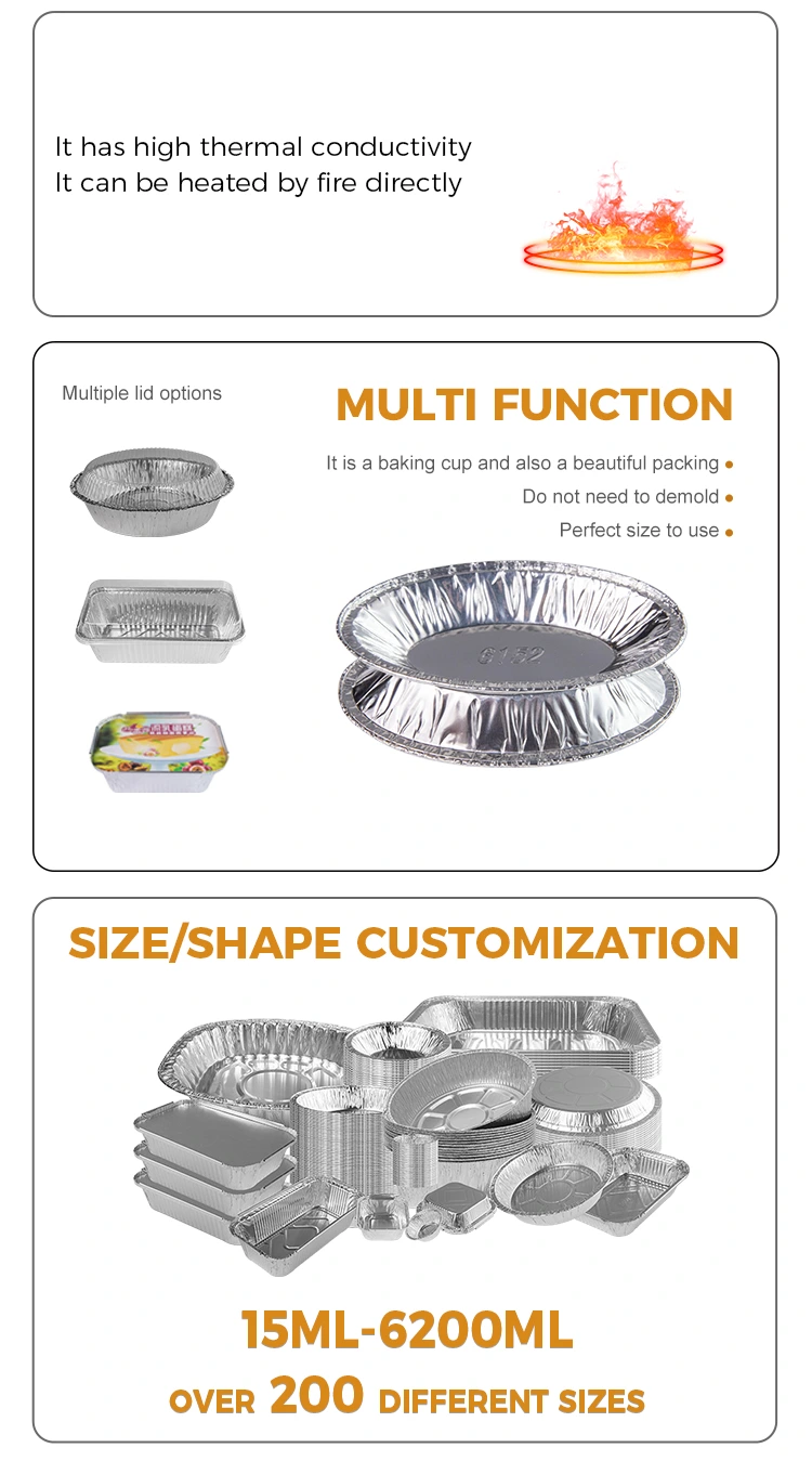 सुविधाहरू: एक-टुक्रा मोल्डिंग गाढा र बेक्ड प्रतिरोधी, खाद्य सम्पर्क ग्रेड एल्युमिनियम अनुकूलित, लहर, कटौतीको प्रतिरोध, उच्च तापमान प्रतिरोधको प्रतिरोध।