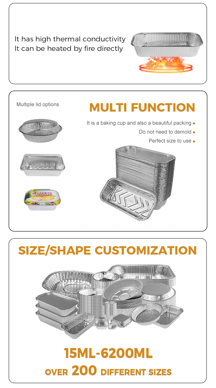 सुविधाहरू: खाजा बक्स हेलेल 80011 एल्युमिनियम एल्युमिनियम पसीना सामग्री राम्रो ताप संरचनाले बनेको छ, जसले खाद्यान्नको तापक्रम कायम गर्न सक्दछ र खाना अधिक स्वादिष्ट बनाउँछ। थप रूपमा, हाम्रो आयताकार बारबेक्यु चाँडो एल्युमिनियम पन्नी कन्टेनरमा पनि एक गर्मी संरक्षण प्रकार्य छ, जुन तपाईंको लोगोलाई अनुकूलित गर्न उपयुक्त छ, र तपाईंको ब्रान्ड छवि बढाउनुहोस्।