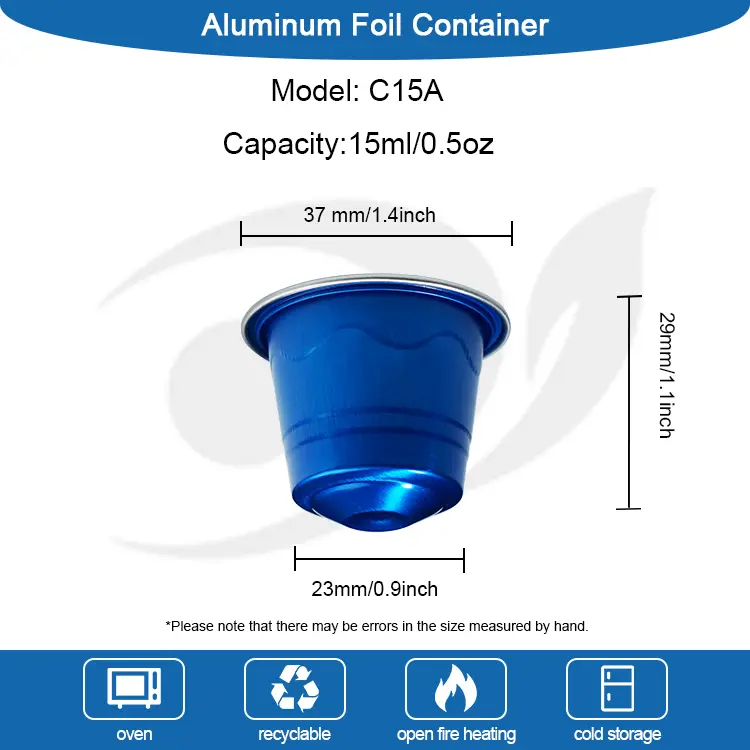 Yanuu एल्युमिनियम पन्नी आपूर्तिकर्ताहरु c15a सम्झौदार सिलिक सिलिकन-फ्री कफी क्याप्लिक टोकसूल-नि: शुल्क खाली कफी क्याप्सुल उपयुक्त छ, र नाइट्रोजन फ्लशिंग द्वारा प्रयोग गर्न सकिन्छ। थप रूपमा, लोगो र रंगहरू अनुकूलित गर्न सकिन्छ, र ढाँचा एल्युमिनियम पन्नी मुपतमा मुद्रित हुन सक्छ, र लोगो स्ट्याम्पिलाई पनि कफि क्याप्सुलको तल सकिन्छ। क्याप्सुल आयामहरू निम्न हुन्: शीर्ष व्यास 37 37 मिली (लगभग 1.4 इन्च), आधार व्यास व्यास 2m0 मिली (लगभग 1. 1.1 इन्च)।